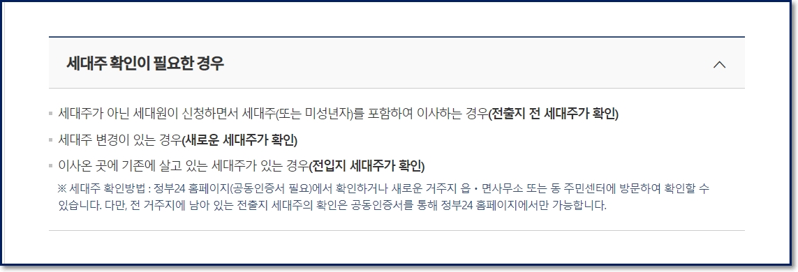 전입신고 과정에서 세대주의 확인이 필요한 경우를 요약한 내용입니다. 세대주가 아닌 세대원이 전입을 할 경우 전 세대주의 확인이 필요하며, 세대원으로 전입하는 경우도 새로운 거주지 세대주의 확인이 필요합니다.