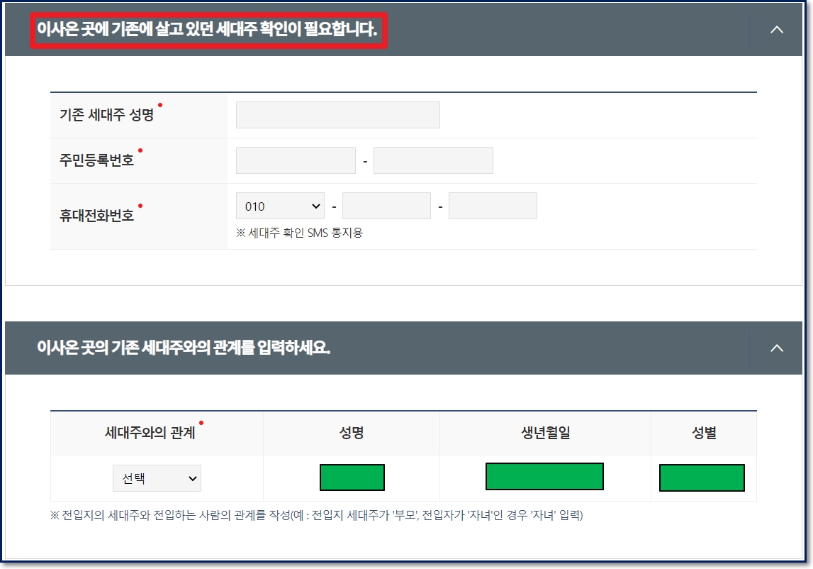 전입신고 신청서 작성 시 유의사항